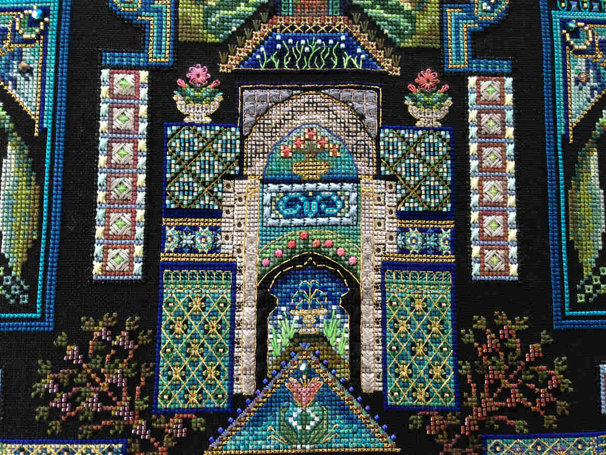 Dreaming of a wonderfully tiled Hammam bath ? Orient-style, with bright blues and turquoises – highlighted with golds ? The true place of leisure for the Odalisques ? Now you can stitch your dream!