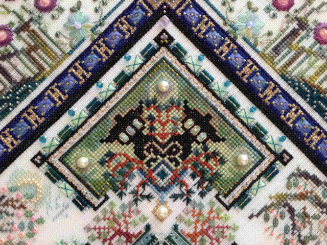 Materials: Variegated silks, beads, metallics, and crystals add to the splendor of this design. Check the complete list of materials here.