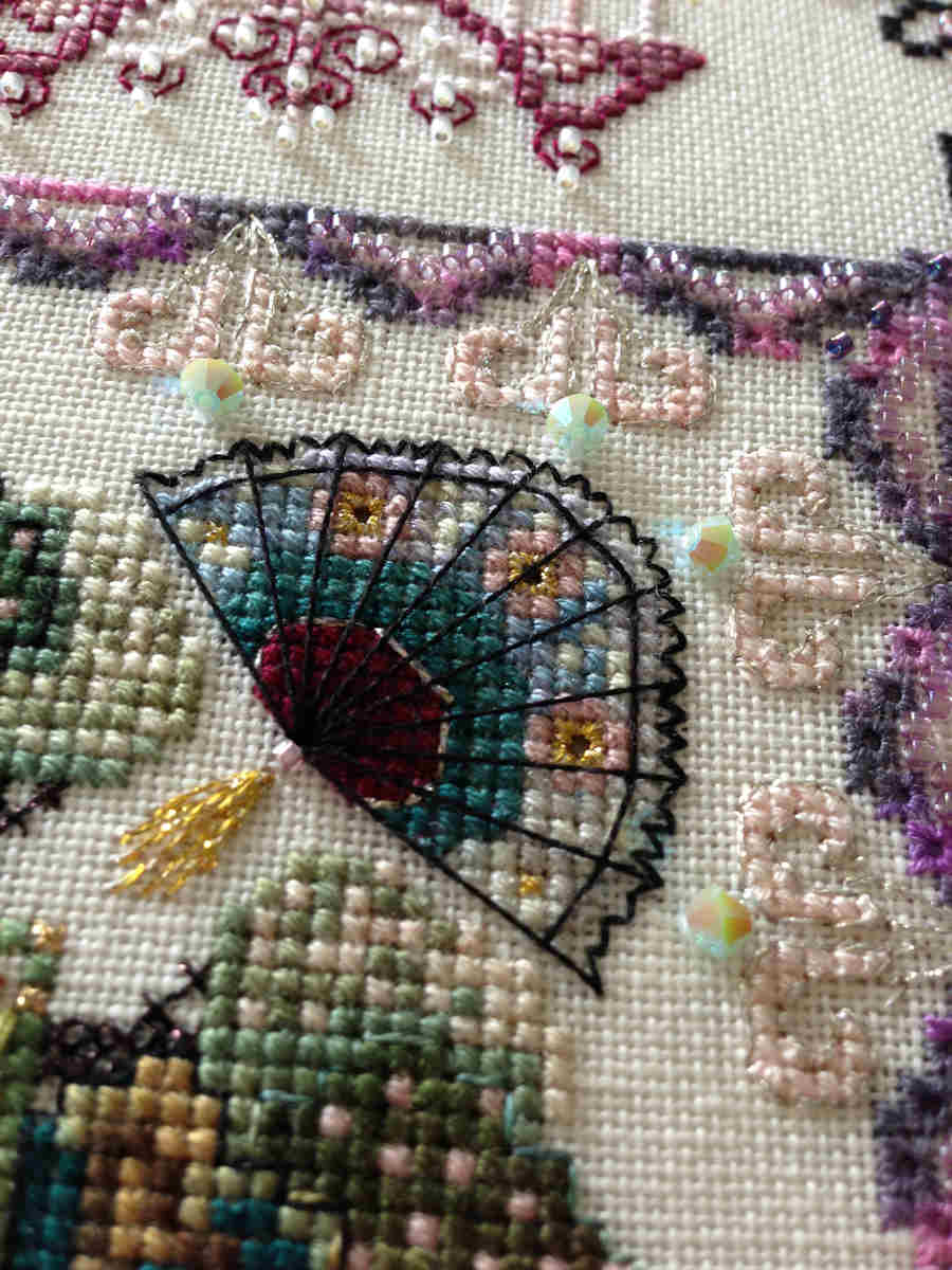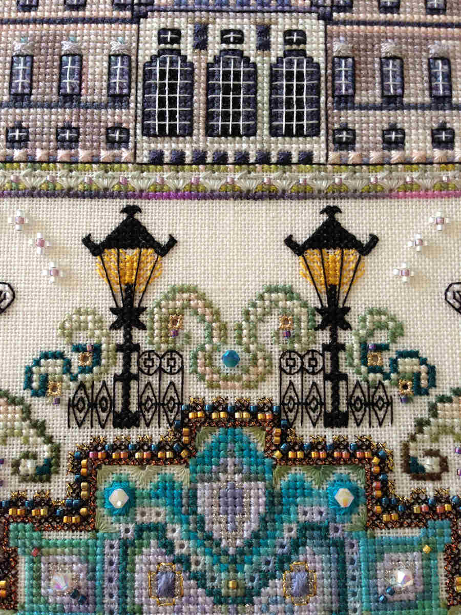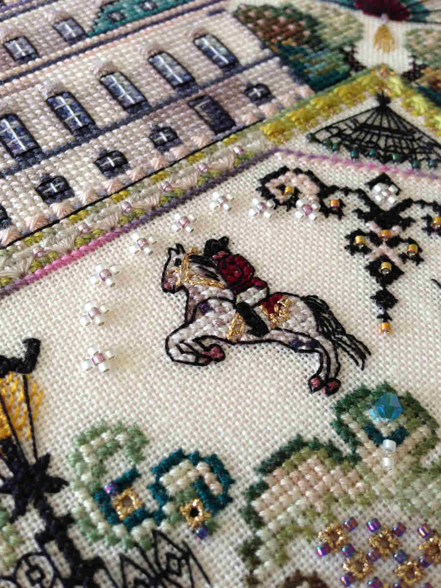 This design comes in 12 parts, as it was published in the former online class. If you stitch one part a month you will easily finish it in the course of a year 🙂 !