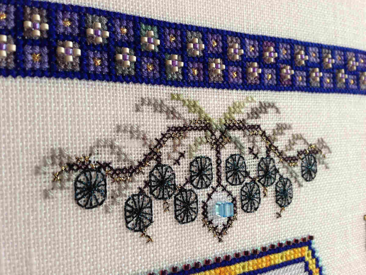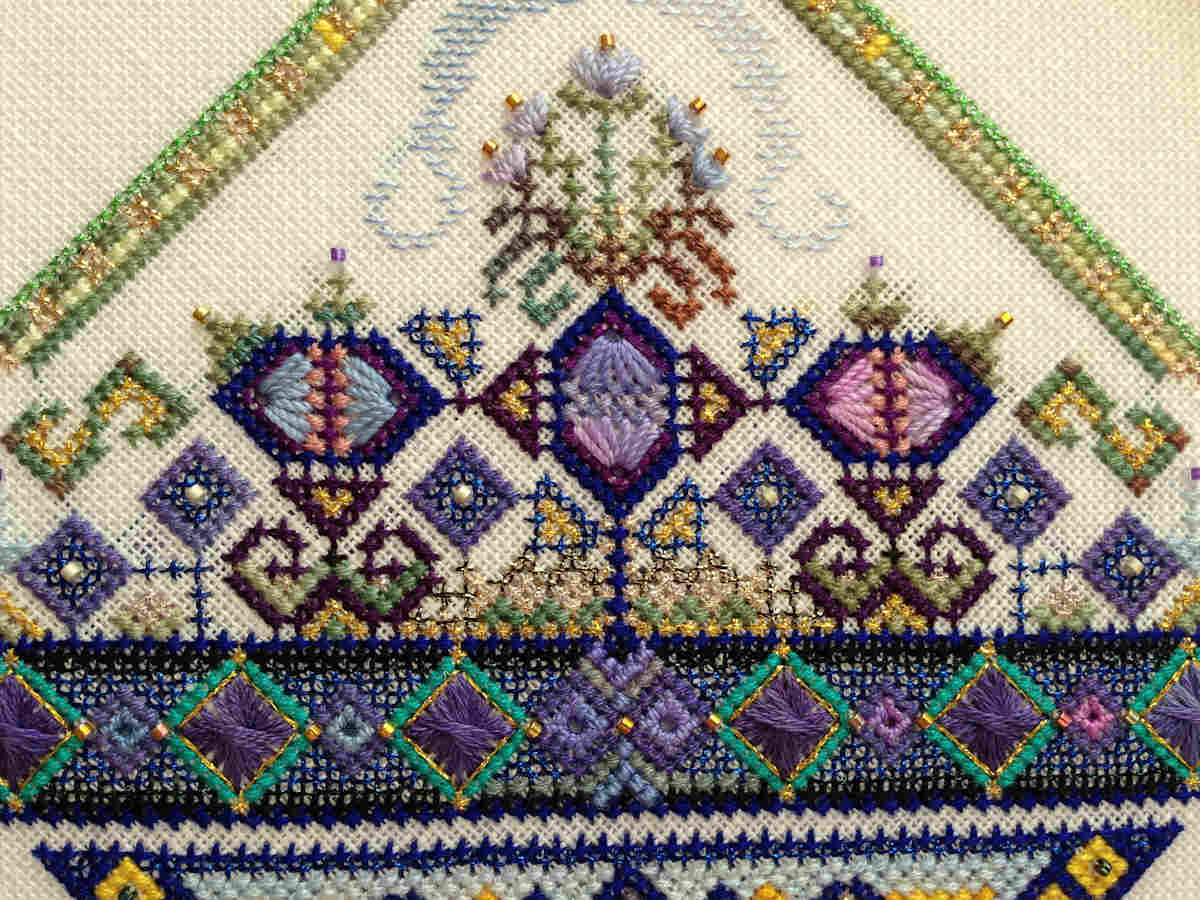 Beautiful and various threads are used, braids and beads – and together with cross stitches you will work Special Stitches for added texture and dimension.