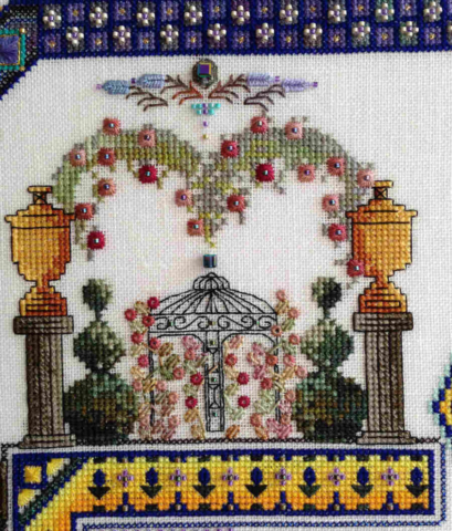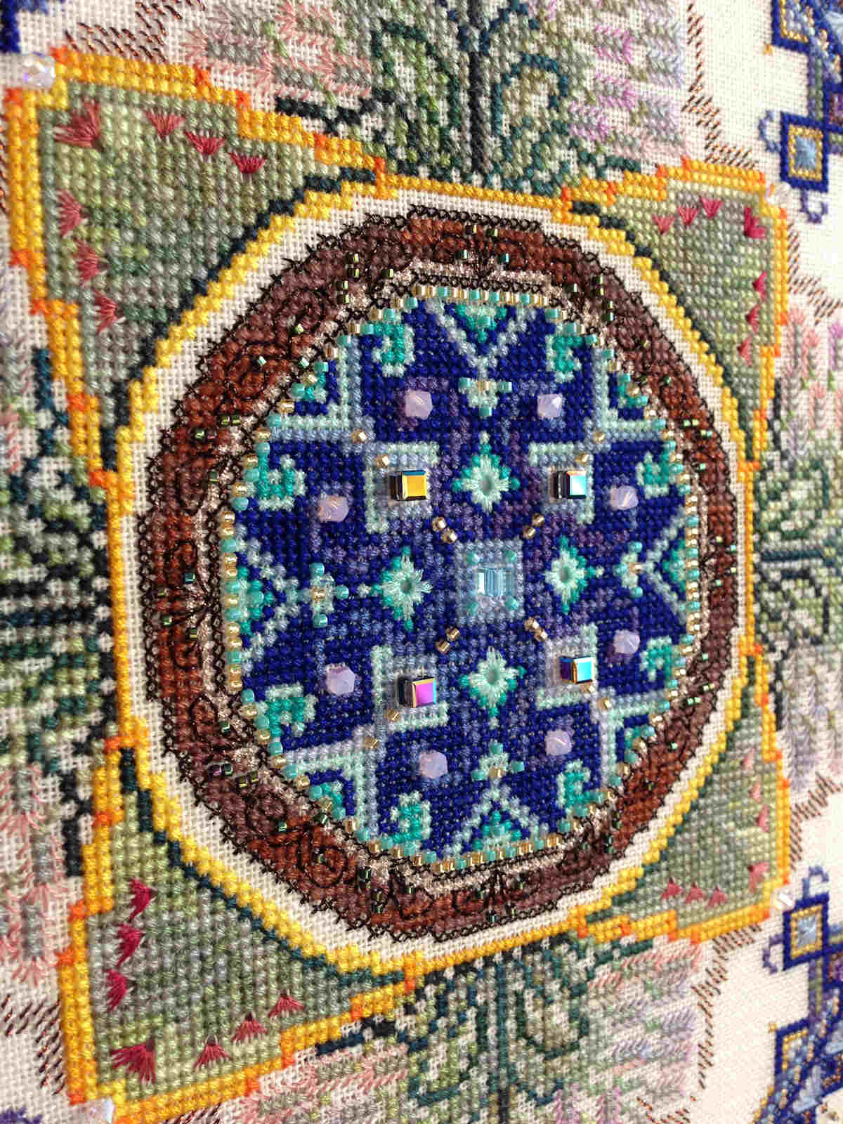 This one is a sparkler! Many – many! – sparkly treasures, so many colors of softest silks… it is a treat to work on!